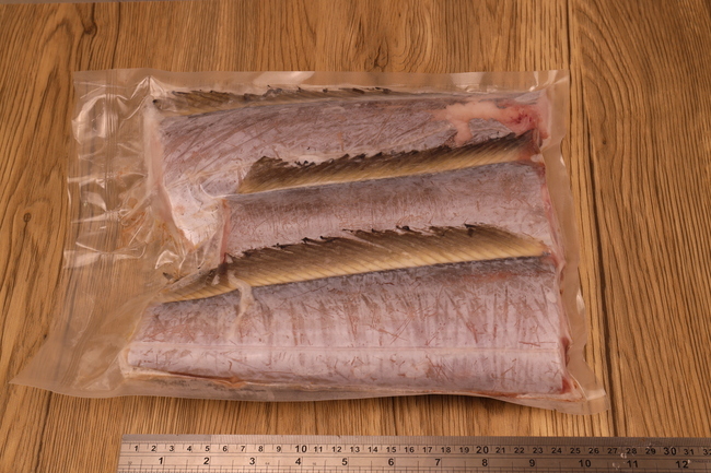 白帶魚俗稱白魚,除魚腹外,熱量、膽固醇皆低,營養價值高,且暗刺不多,適合健身、老人、幼兒、有高血壓疾病等族群食用。所有白魚皆為台灣現撈,一進港便去頭去尾去內臟去鱗,每一包為一隻並切為三段,方便您保存及分次食用。