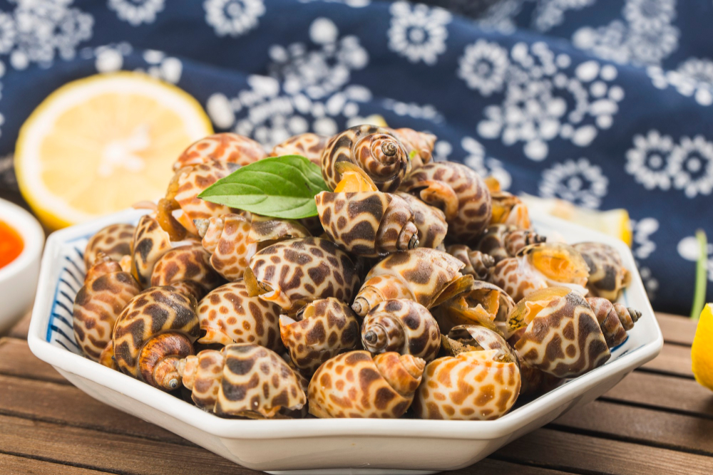 台灣野生熟凍鳳螺,口感爽脆彈牙。已煮熟,解凍後加熱即可食用。適合熱炒或水煮,最方便的下酒菜。